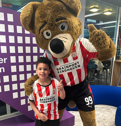 Het werd een mooie voetbalavond, waarin PSV uiteindelijk met 2-1 wist te winnen van AZ. Dat zorgde natuurlijk voor een extra feestelijke sfeer op de tribune en na afloop van de wedstrijd kwam Phoxy (de mascotte van PSV) zelfs nog langs in de ASML Community Lounge om kennis te maken met de kids. Tof!